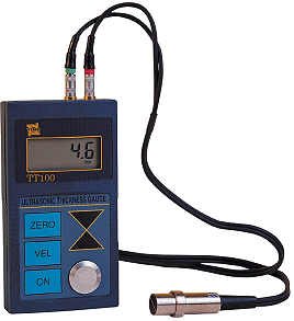 Ультразвуковой толщиномер TT 100 - полностью самокалибрующийся высокоточный прибор, измеряющий толщины изделий из металлов и их сплавов (в том числе цинка, железа, стали, алюминия и т.д.), пластмассы, керамики, стекла и других материалов до 300 мм с шагом 0.1. Толщиномер TT100 сертифицирован Госстандартом РФ и внесен в Государственный реестр средств измерений.